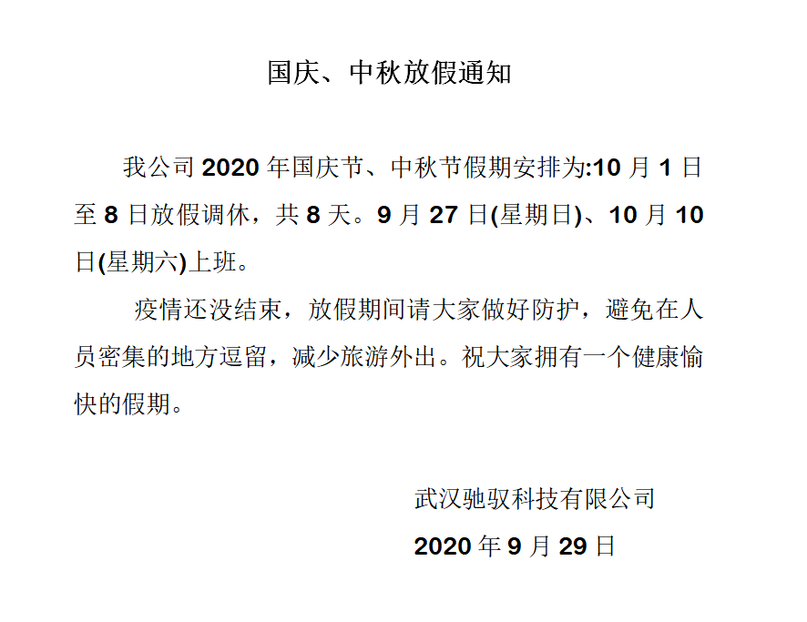 The Dragon Boat Festival is approaching, and the company has decided to take a three-day holiday from June 25th, 2020 to June 27th, 2020. The official start date is June 28th, 2020. Wishing everyone a joyful, peaceful, and secure holiday.