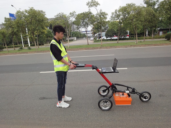 雷达在管线应用上,其分辨率更高,路面的钢筋网也清晰可见。